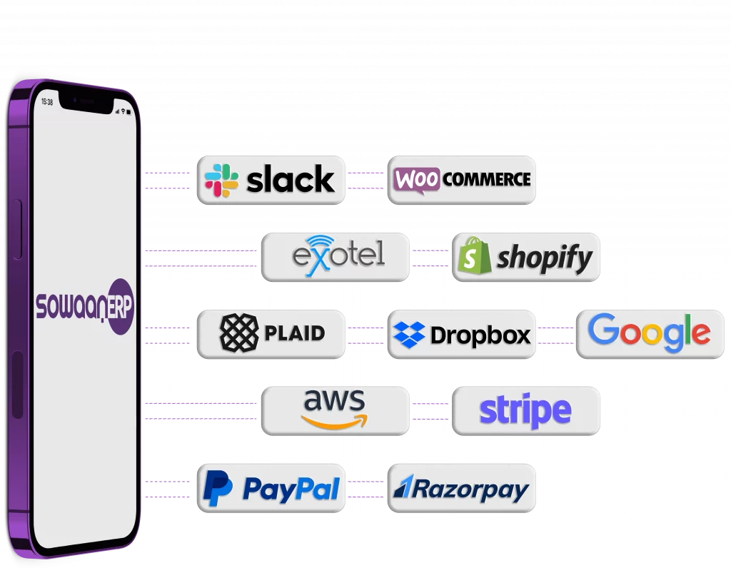 SowaanERP Integration Solutions are meant to link your SowaanERP with other platforms such as a shop, a payment processor, a cloud provider, or a communication app. All of our integrations enable data interchange, promote the automation of operations, and optimize performance. Whether you require cloud integration or on premise integration with ERP, SowaanERP makes it easier for you to gain better real-time visibility, reduce manual tasks and enhance productivity.