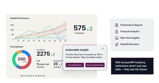 The management of the student data in various systems may be confusing and error prone. SowaanERP enables all academic records to be stored in a single secure system and thus it is easy to retrieve and update personal details (attendance, personal information, grades, and financial transactions) in SowaanERP. Administrators, teachers and parents can have the advantage of real-time access to correct student profiles.