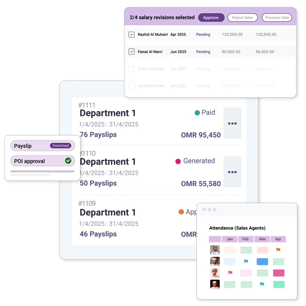 The hr and payroll software Oman performs salary calculations as well as deduction processing while upholding national legal requirements.The payroll management solution from SowaanERP fits organizations which need multiple currency support and WPS compliance and report generation for compensation details.
